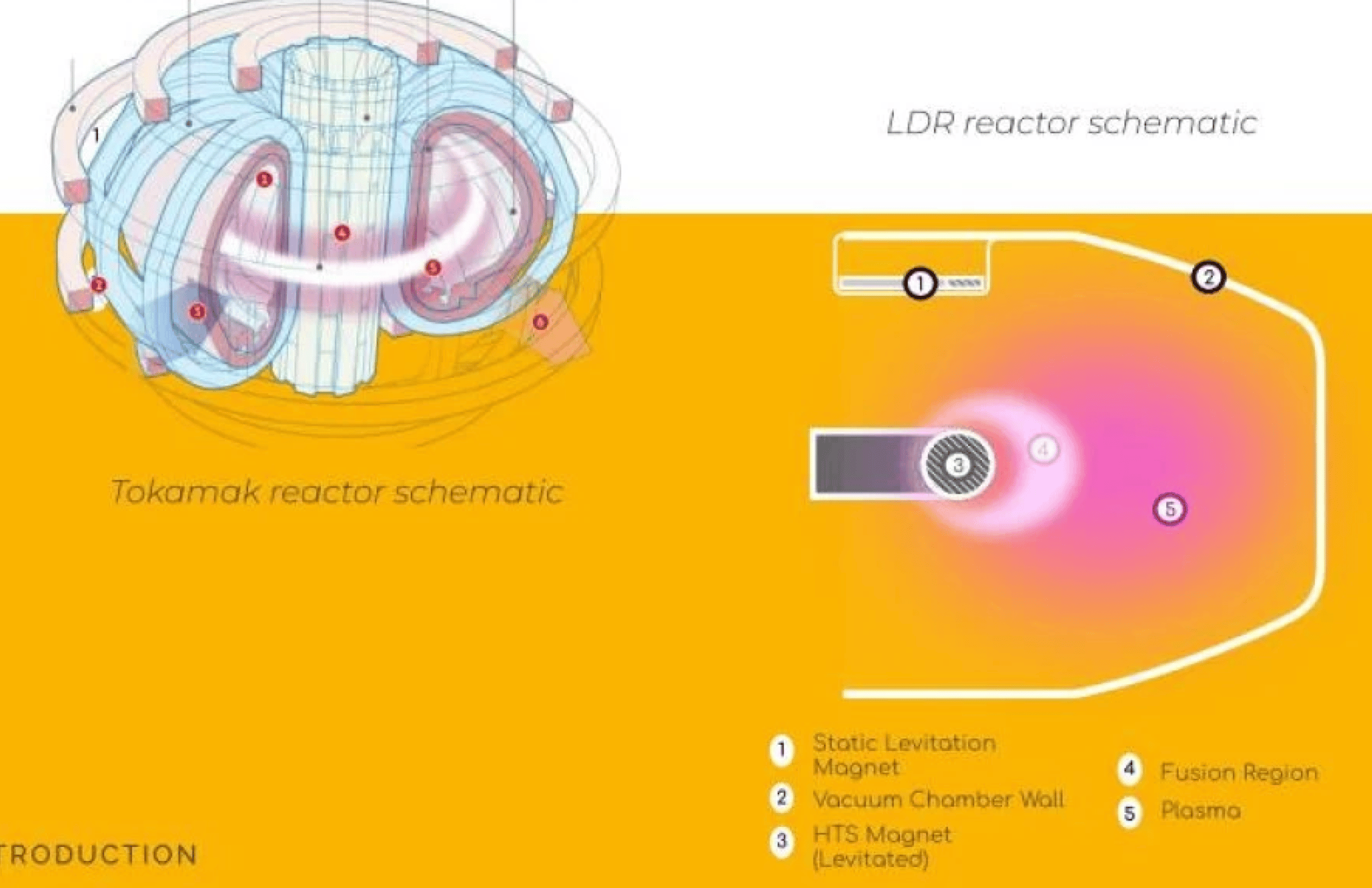 A tokamak uses magnets to confine a donut shaped plasma in their centre, whereas the LDR positions its superconducting magnets in a donut shape, which confines plasma around the magnets.